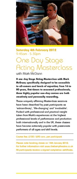 Drama Direct Ltd / 01/07/2011 STAGE MASTERCLASS THE BERRY THEATREHEDGE END EASTLEIGH HAMPSHIRE To book a place call: T: +44 (0)23 80627 816 W: www.theberrytheatre.co.uk FB: www.facebook.com/theberrytheatre Share this: Click to share on X (Opens in new window) X Click to share on LinkedIn (Opens in new window) LinkedIn Click to share on Tumblr (Opens in new window) Tumblr Click to email a link to a friend (Opens in new window) Email Click to share on Pinterest (Opens in new window) Pinterest Click to share on WhatsApp (Opens in new window) WhatsApp Click to share on Facebook (Opens in new window) Facebook Like Loading...