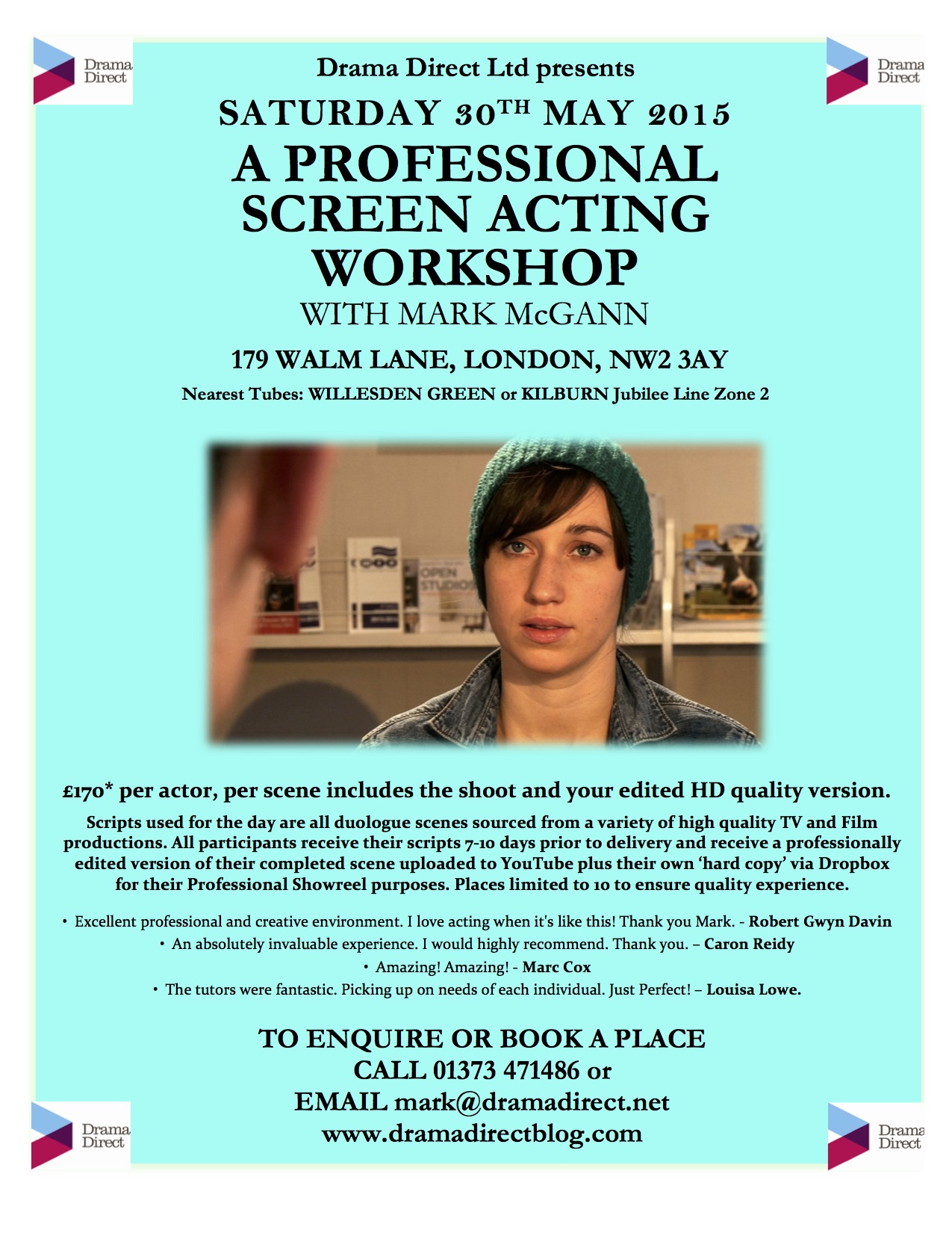 LONDON SCREEN ACTING WORKSHOP (& NEW SHOWREEL SCENE) – SATURDAY 30th MAY 2015 (£170* – 10% Discount for Equity Members)