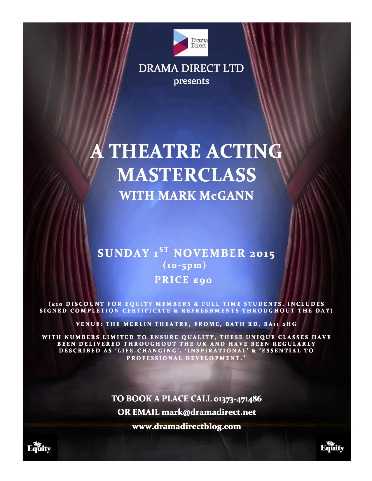 NOW BOOKING FOR STAGE ACTING MASTERCLASS WITH MARK McGANN – MERLIN FROME SUNDAY 1st NOV 2015